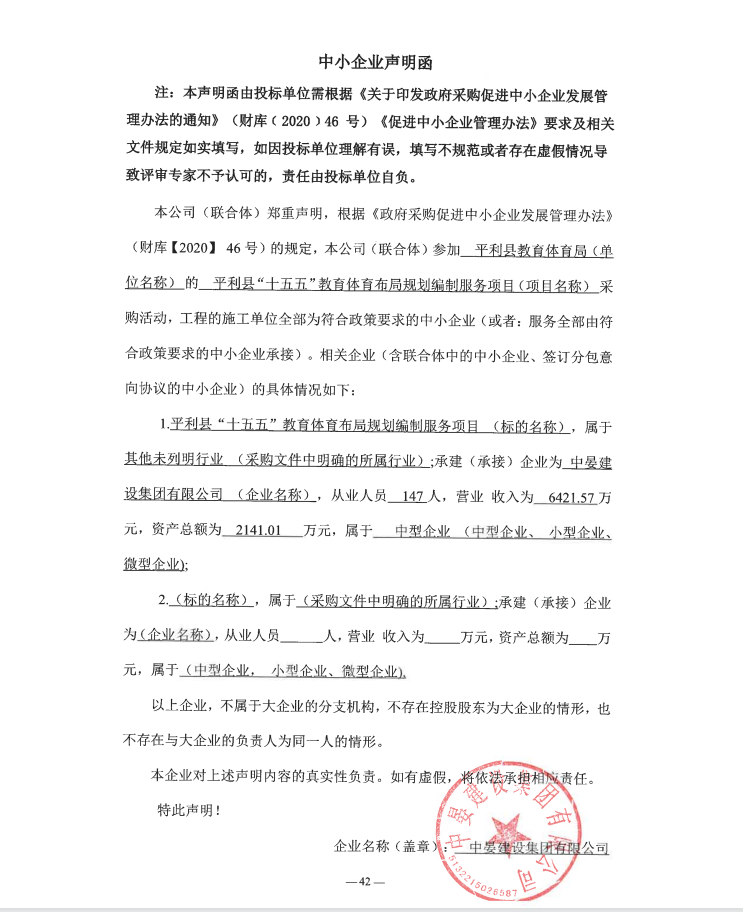 ******体育局(本级)平利县“十五五”教育体育布局规划编制服务项目中标(成交)明细.pdf 中小企业声明函.png